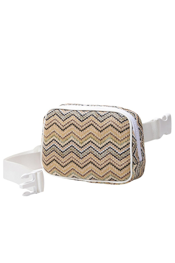 Chevron Pattern Straw Sling Bag features a meticulously woven design that highlights its unique chevron motif. Made from high-quality straw, this bag offers durability and a lightweight feel, perfect for...