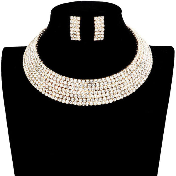 Crystal Rhinestone Trim Teardrop Collar Evening Necklace