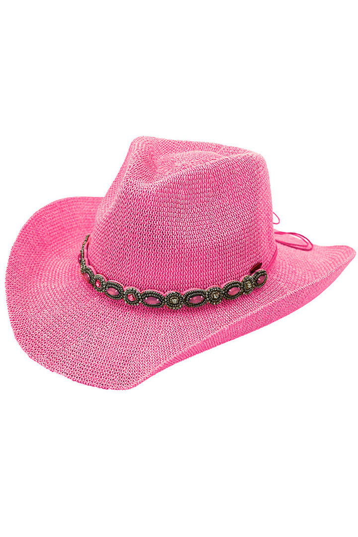 Sombrero de vaquero con adorno de joya de diamantes de imitación CC