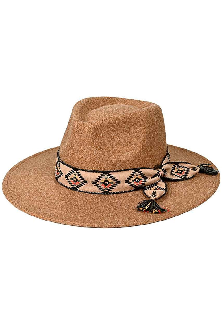 Sombrero Panamá de fieltro vegano con banda de ribete azteca CC