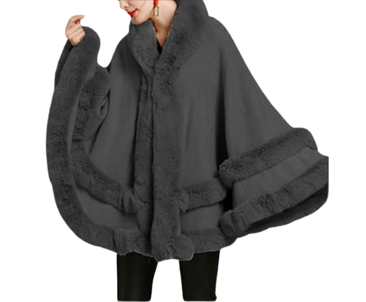 Ruby Elegant All-around Faux Fur Trim Poncho Faux Fur Trim Knit Ruana Cape Faux Fur Wrap, the perfect accessory, luxurious, trendy, super soft chic capelet, keeps you warm and toasty. You can throw it on over so many pieces elevating any casual outfit! Perfect Gift Birthday, Anniversary, Christmas, Holiday, Valentine's Day, Special Occasion