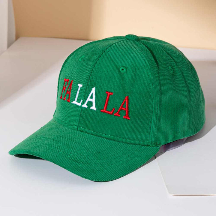 Celebrate the season with this playful holiday cap featuring FA LA LA embroidered in festive colors. A fun Christmas accessory that adds cheer to any outfit, perfect for parties, gatherings, or gifting. Adjustable fit makes it a stylish novelty hat for spreading holiday spirit all season long.