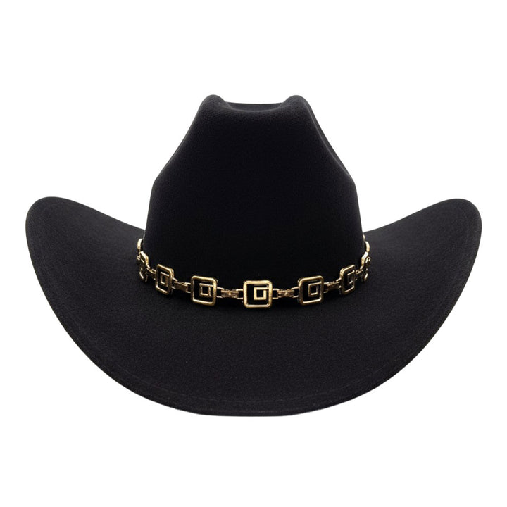 Geometric Metal Chain Accent Western Cowboy Fedora Hat
