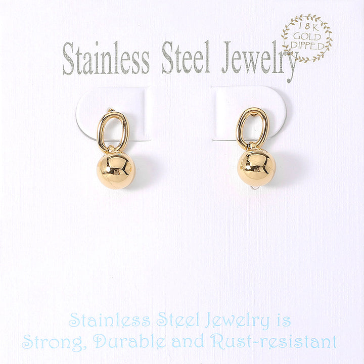 • 18K Gold Dipped Stainless Steel Mini Ball Dangle Earrings