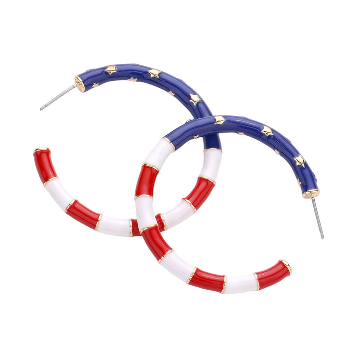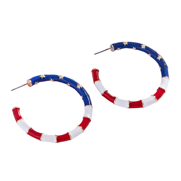 American USA Flag Enamel Hoop Earrings are a patriotic addition to any outfit. The vibrant flag design is expertly crafted and will make a statement. Made with high-quality materials, these earrings are durable and long-lasting. Show off your American pride with these stylish hoops.