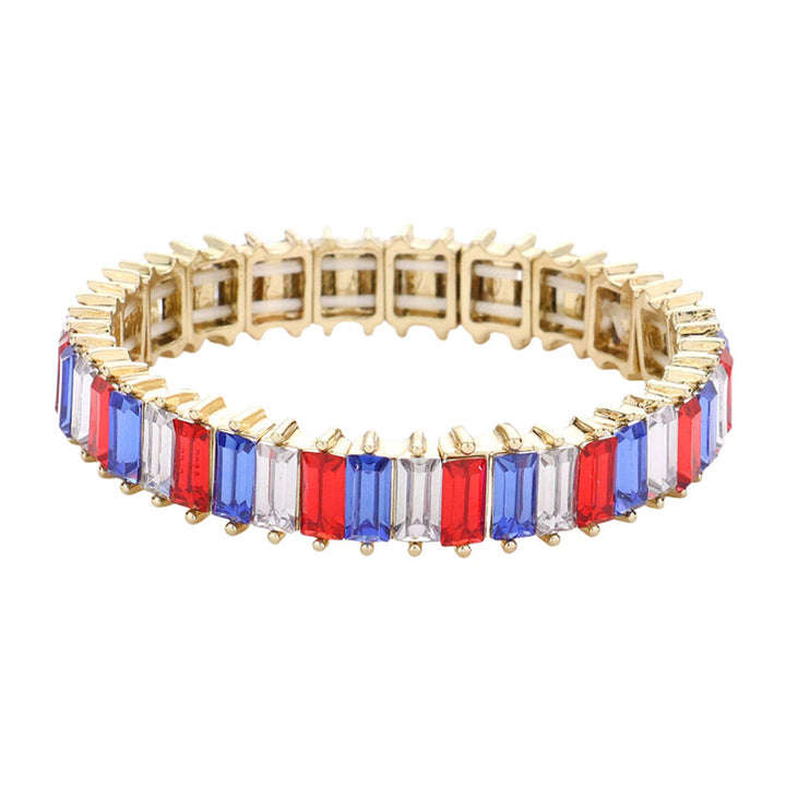 American USA Flag Rectangle Stone Stretch Evening Bracelet