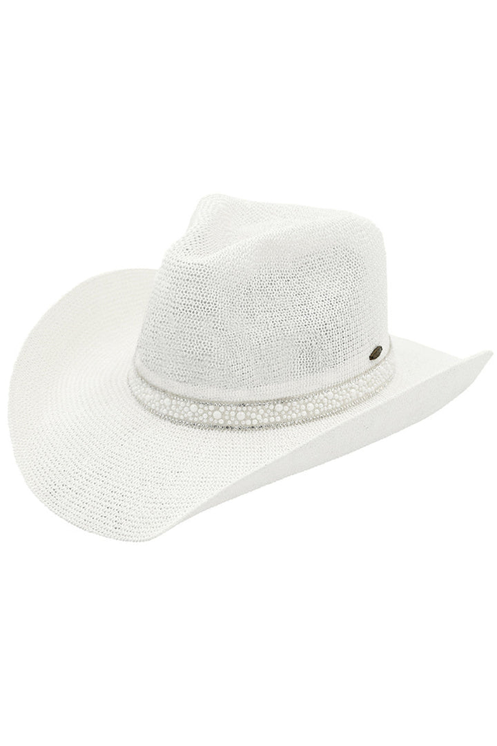 - C.C Cowboy Hat with Black Pearl and Rhinestone Trim Band