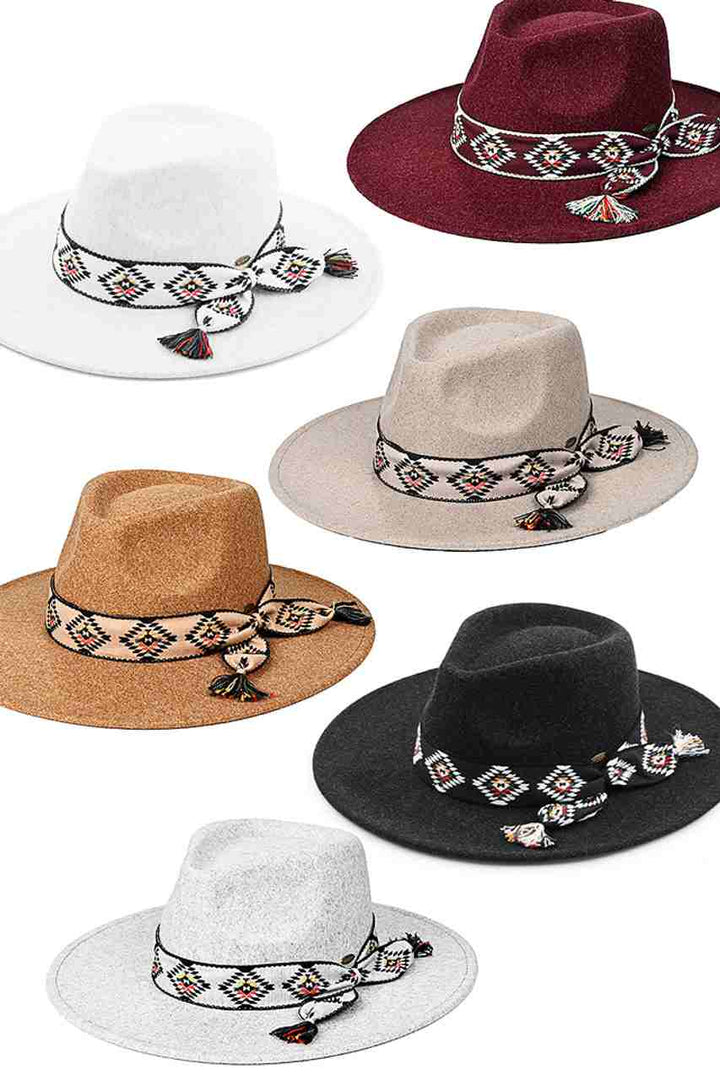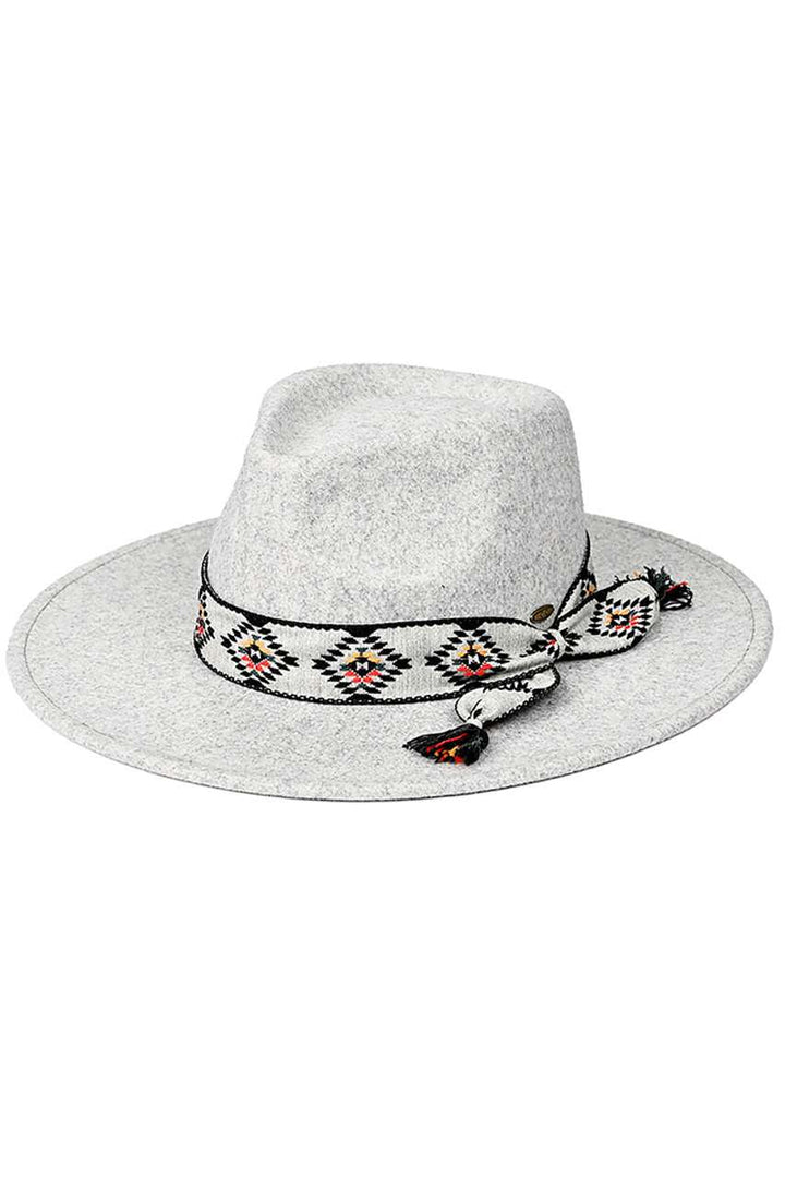 - C C Vegan Felt Panama Brim Hat with Aztec Trim Band