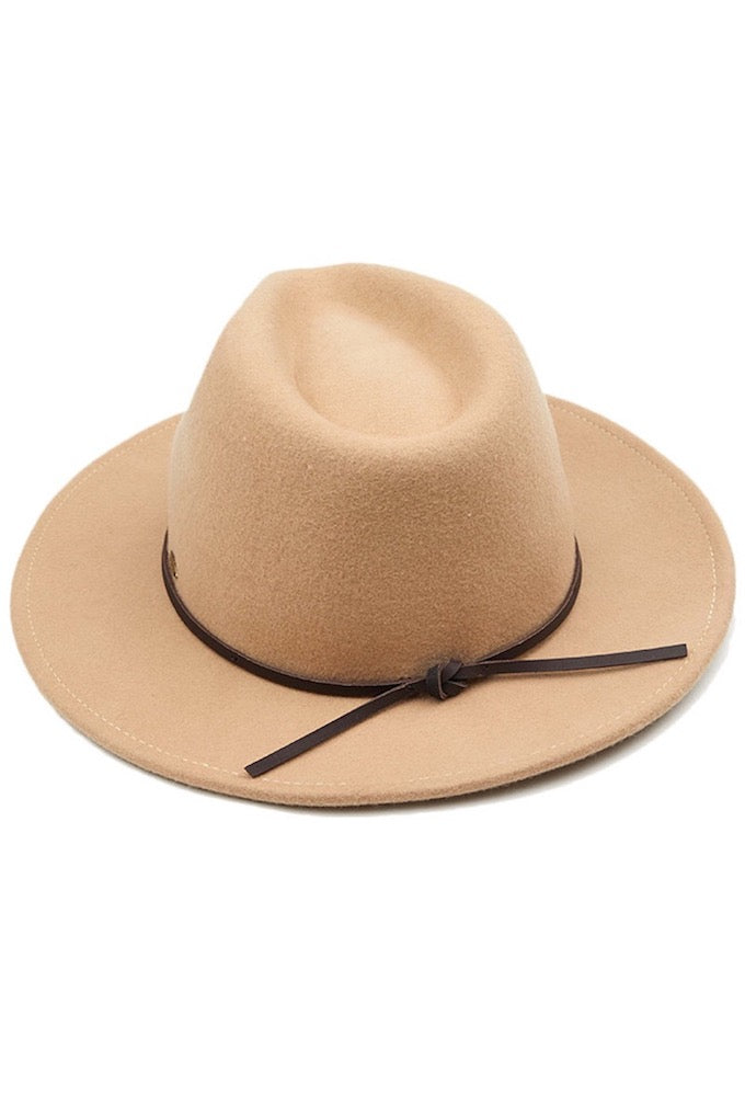 - C.C Wool Felt Panama Hat with Leather Bow Trim