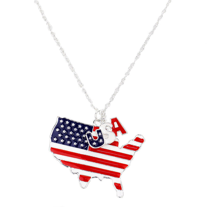 Enamel USA State Map Pendant Necklace. This sweetly patriotic round-shaped American map pendant necklace. Featuring red, white and blue crystal stars and stripes for a bit of fashionable fireworks flair. Great for Election Day, National Holidays, Flag Day, 4th of July, Memorial Day, Labor Day. Perfect Birthday Gift, Anniversary Gift, Mother's Day Gift, Thank you Gift.