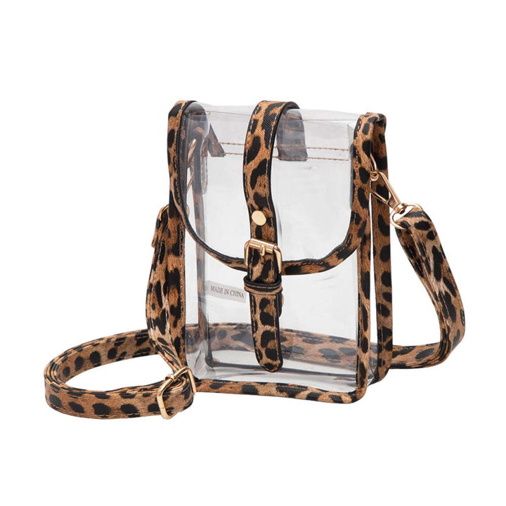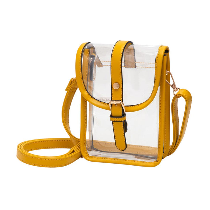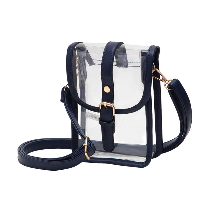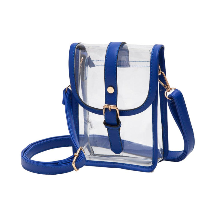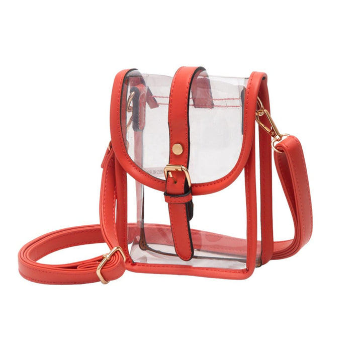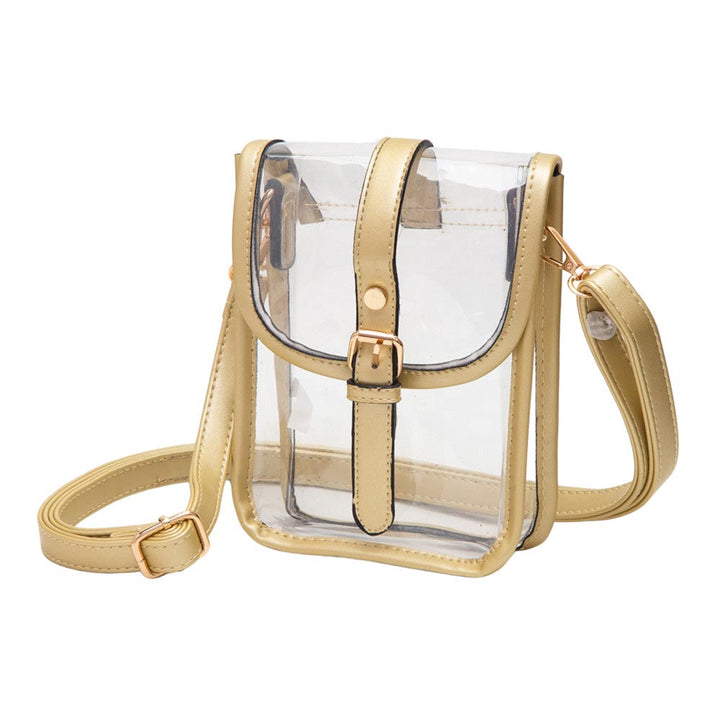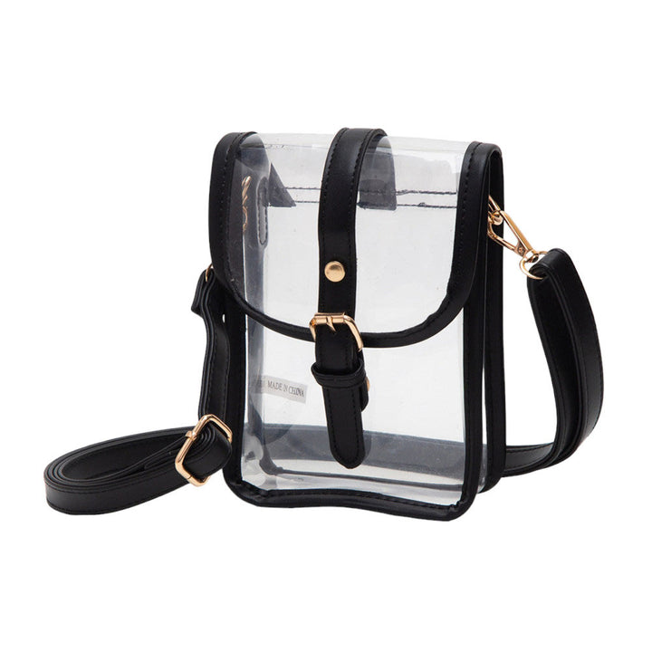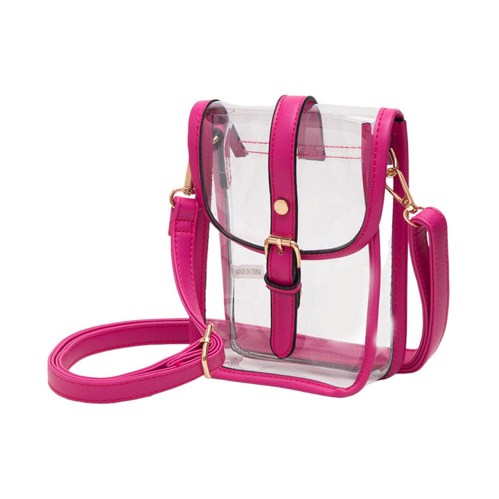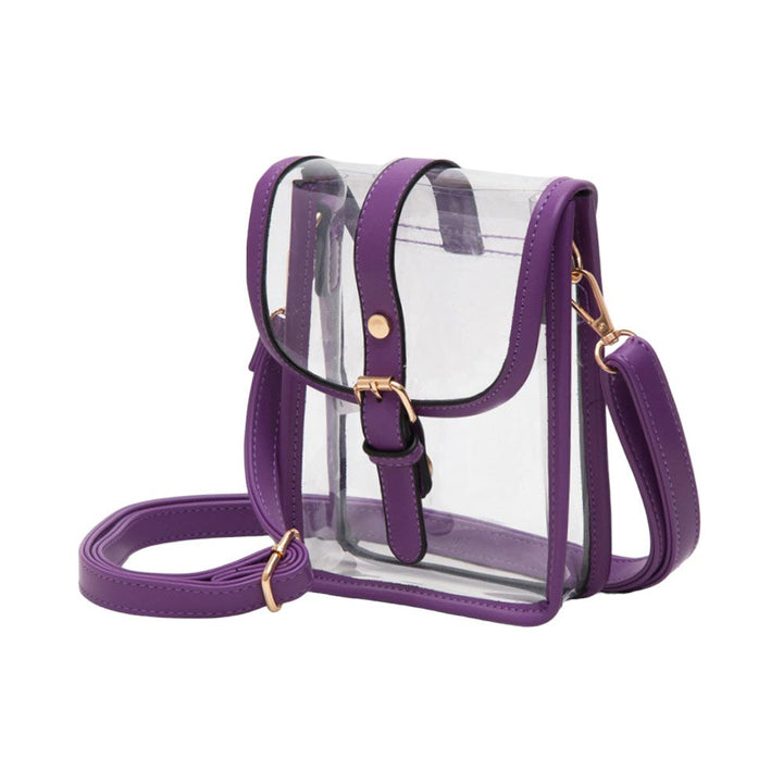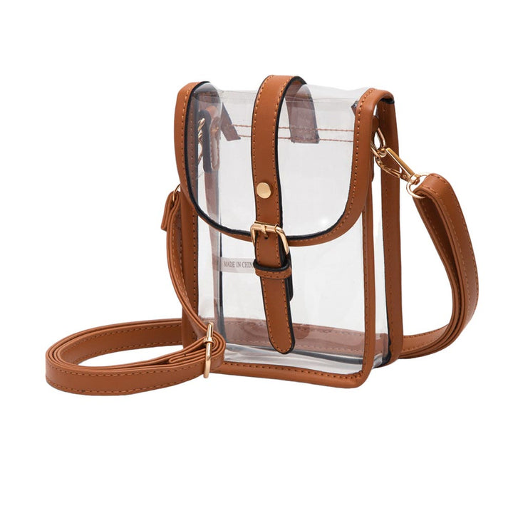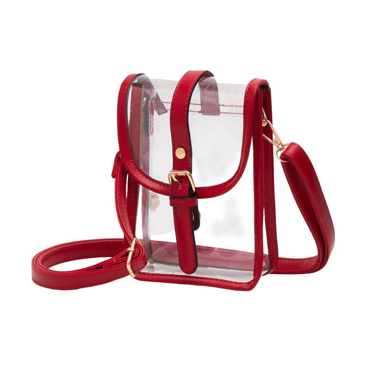 • Faux Leather Belt Buckle Pointed Transparent Crossbody Bag