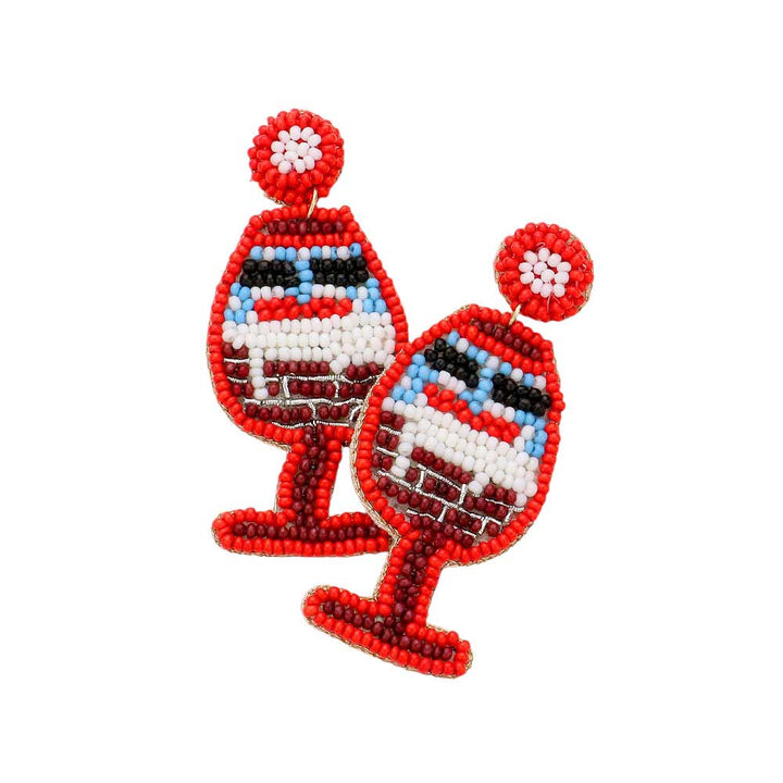 - Felt Back Seed Beaded Christmas Wine Dangle Earrings