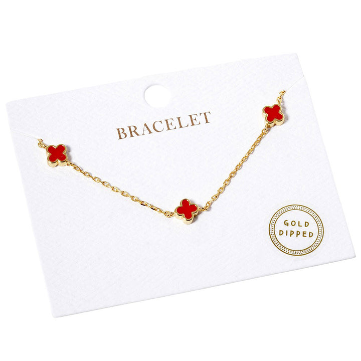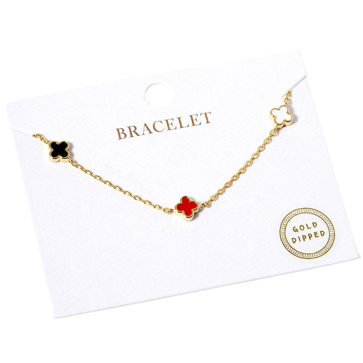 • Gold Dipped Triple Quatrefoil Link Bracelet