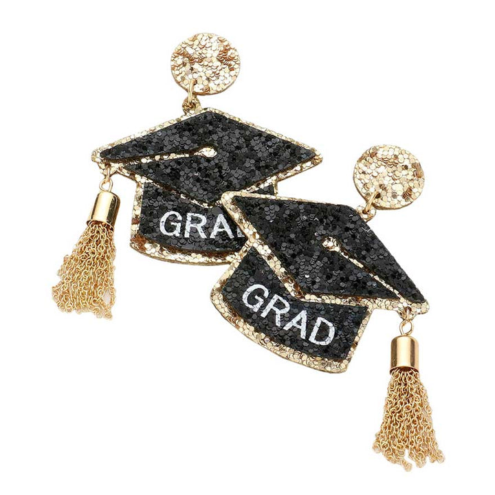 - Grad Glittered Graduation Cap Chain Tassel Dangle Earrings