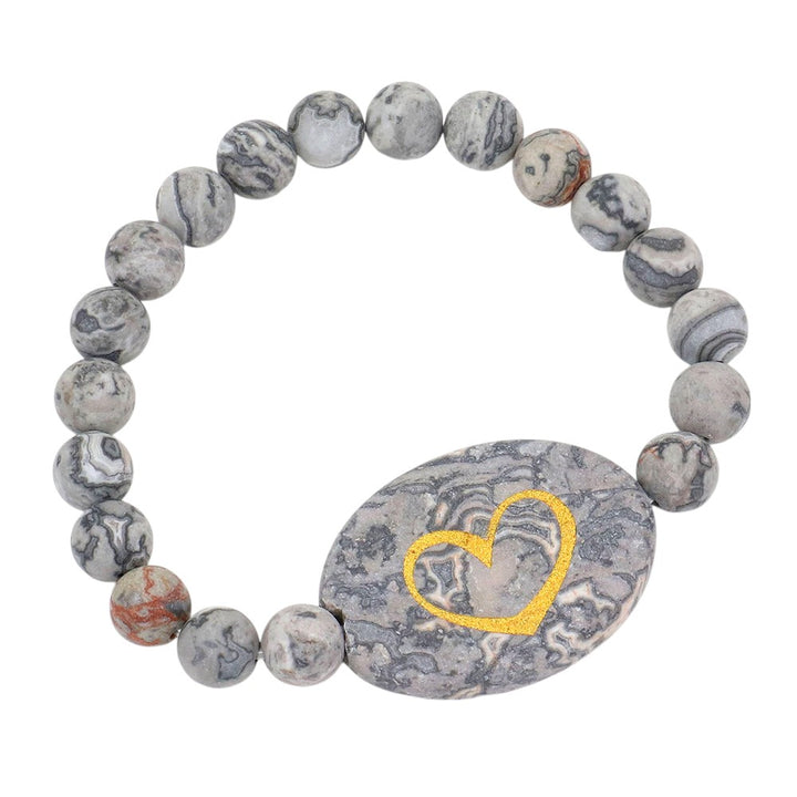 Heart Pointed Semi Precious Stone Stretch Bracelet