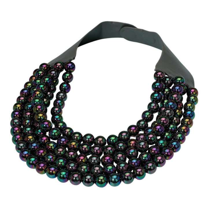 Elevate your style with this multistrand statement necklace featuring glossy round beads and a secure magnetic closure. A bold and elegant accessory perfect for parties, evening wear, or standout fashion looks.