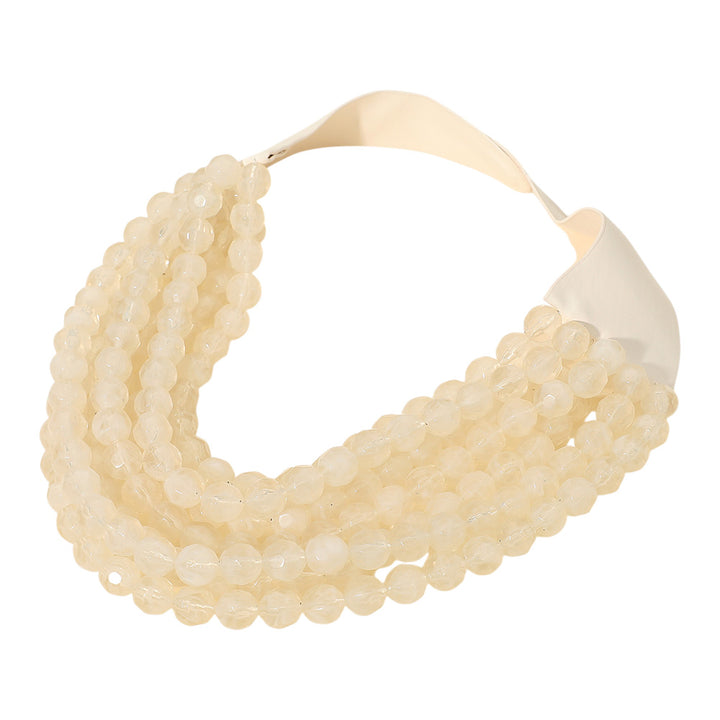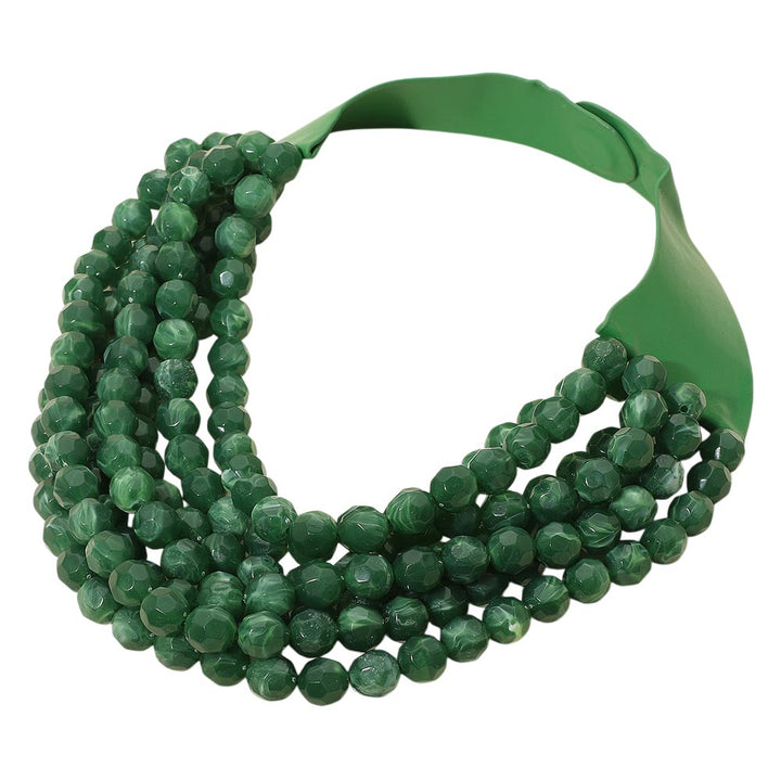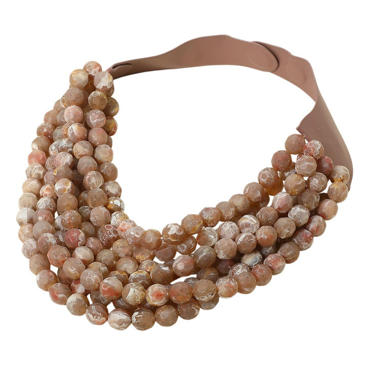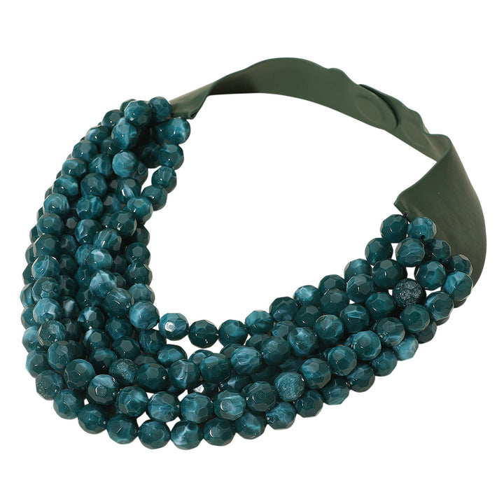 Marbled Faceted Acrylic Ball Beaded Multi Strand Layered Faux Leather Magnetic Necklace