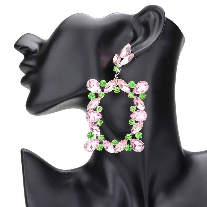 Marquise Stone Cluster Open Rectangle Evening Earrings