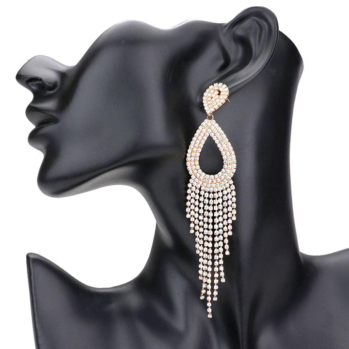 - Rhinestone Pave Fringe Teardrop Evening Earrings