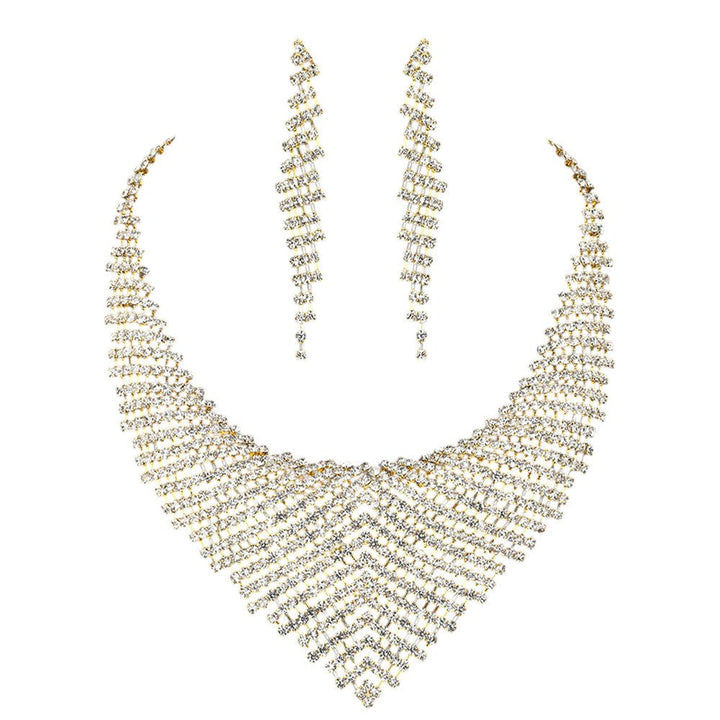Rhinestone Paved Collar Necklace adds an instant touch of glamour to any outfit. With precision-placed rhinestones, this necklace shines and sparkles with every movement. The perfect accessory for any formal event or special occasion.