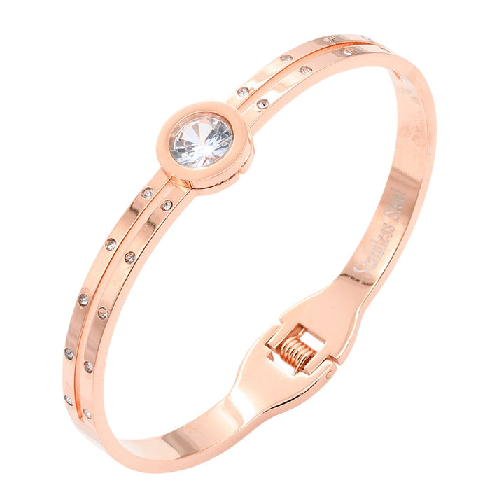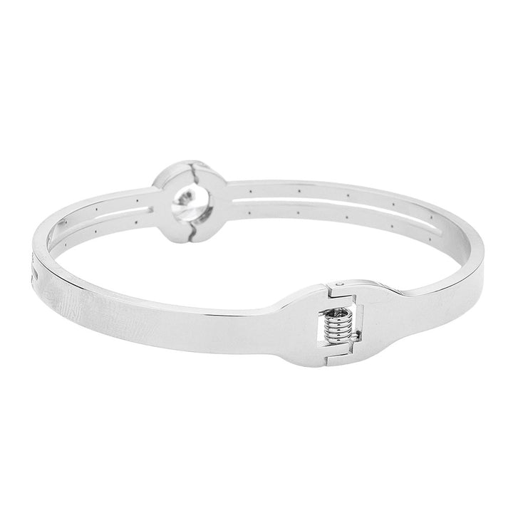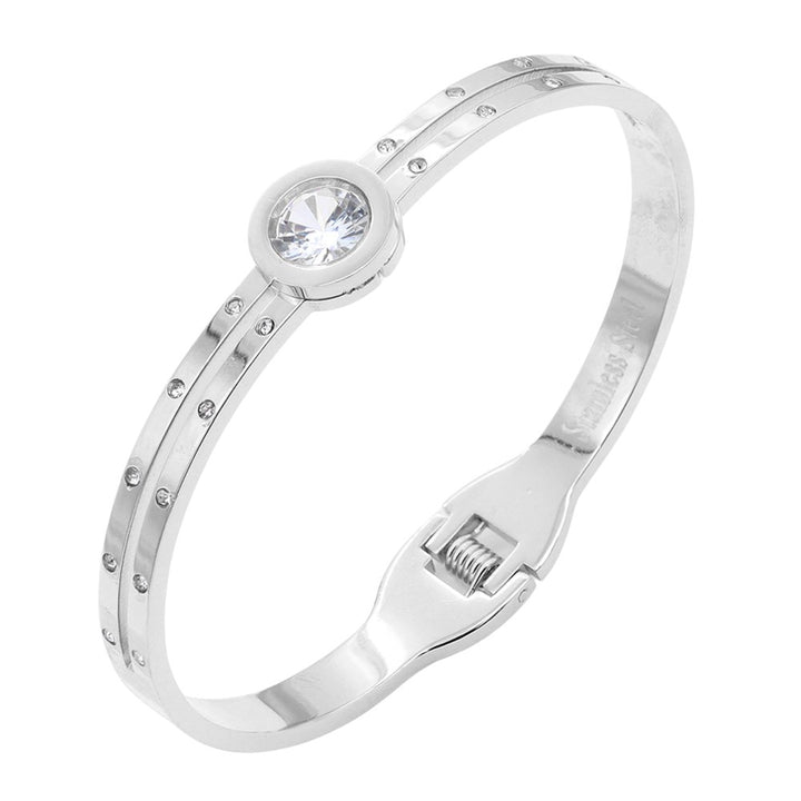 Round CZ Stone Accented Stainless Steel Evening Bracelet