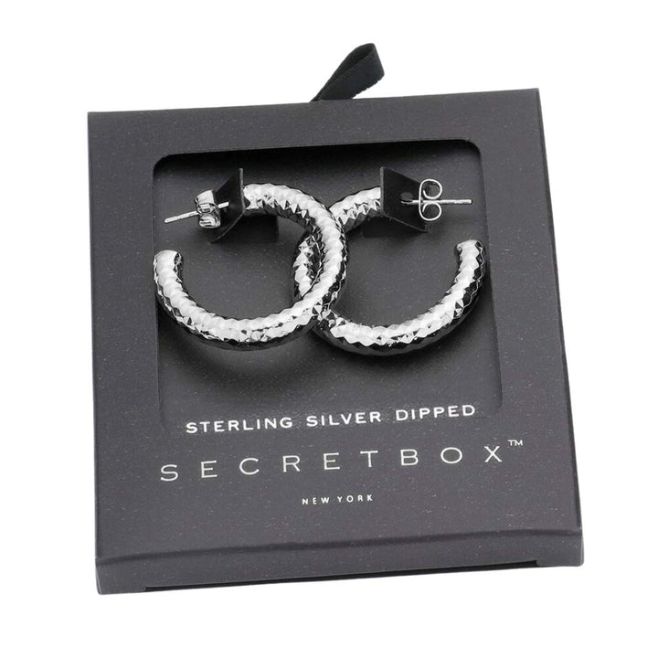 - Secret Box Sterling Silver Dipped Textured Metal Earrings