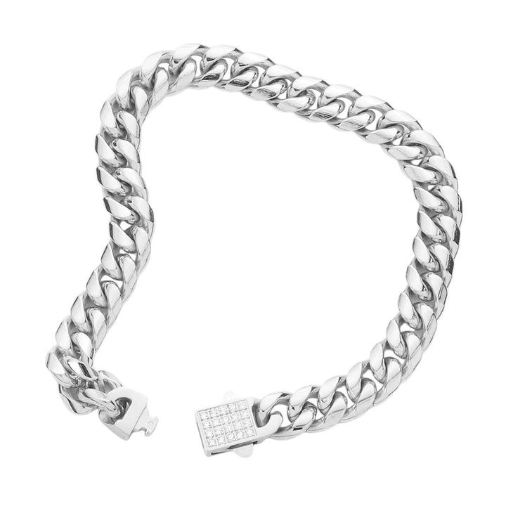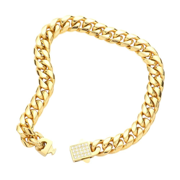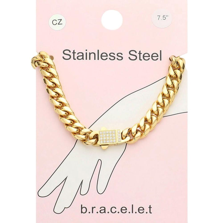 • Stainless Steel CZ Embellished Metal Chain Link Bracelet