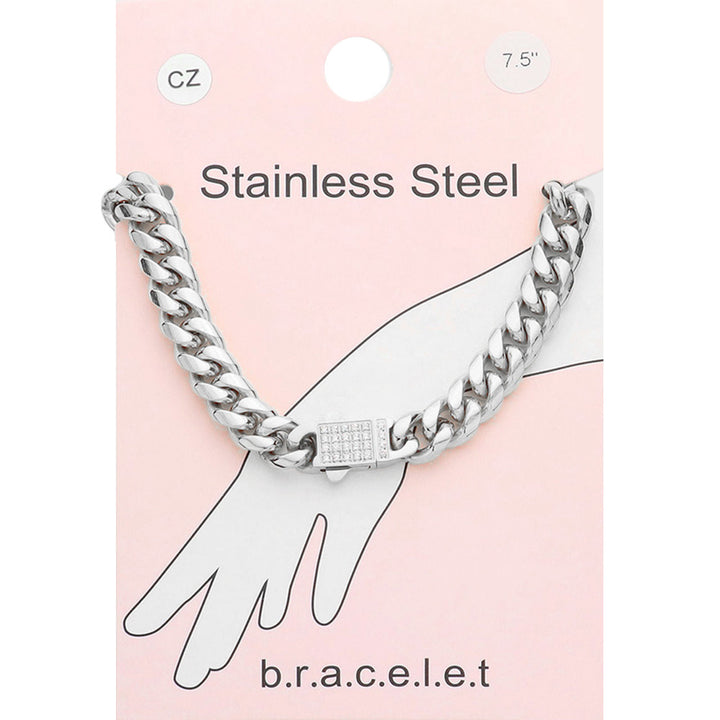 Stainless Steel CZ Embellished Metal Chain Link Bracelet