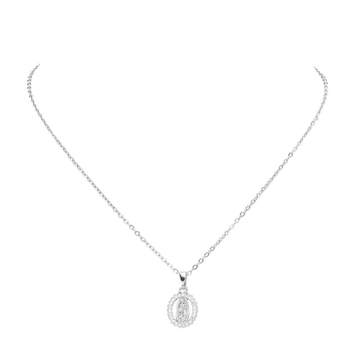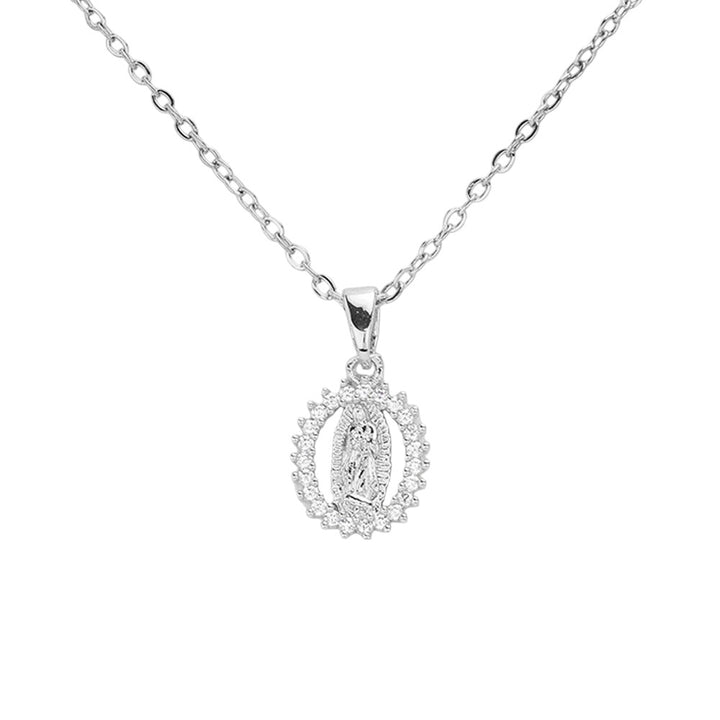 • Stainless Steel CZ Stone Paved Guadalupe Pendant Necklace