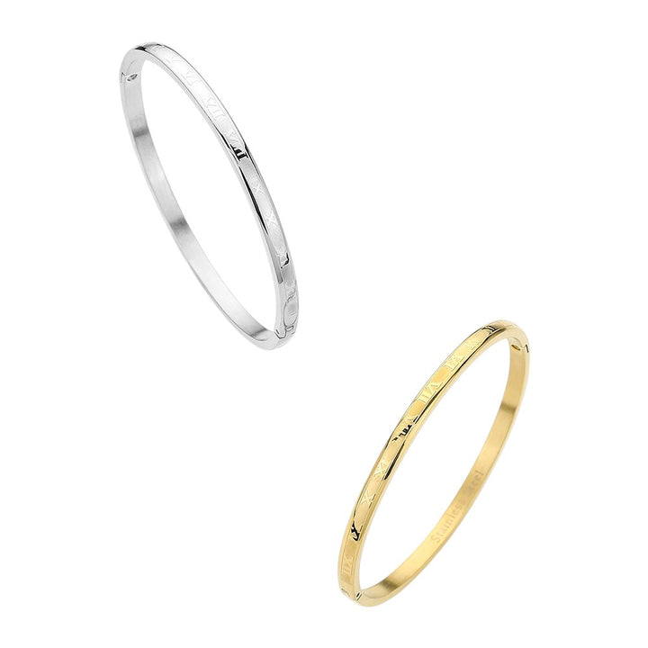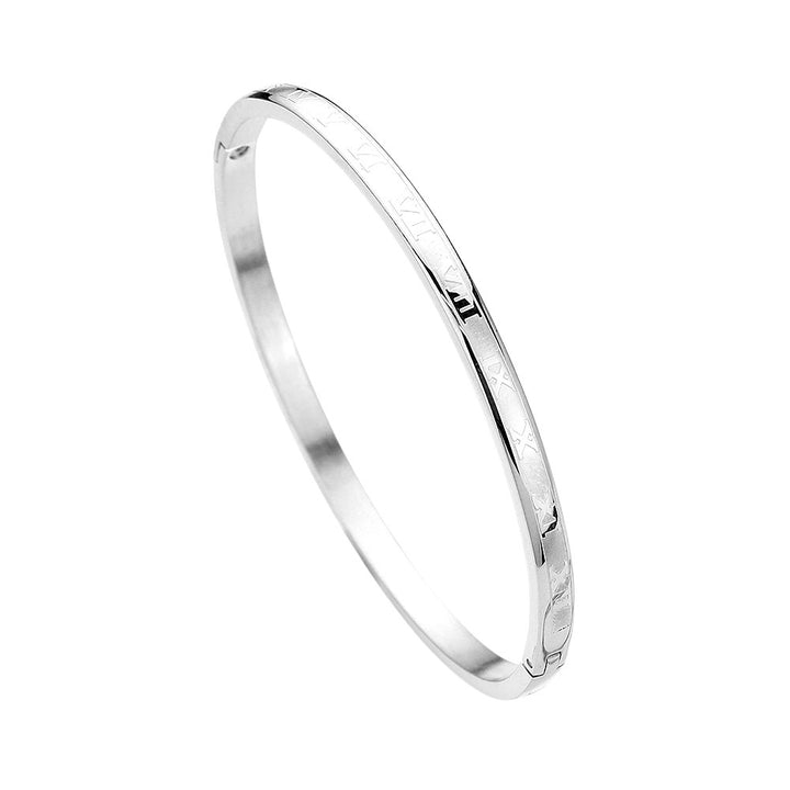 • Stainless Steel Roman Numerals Hinged Bangle Bracelet