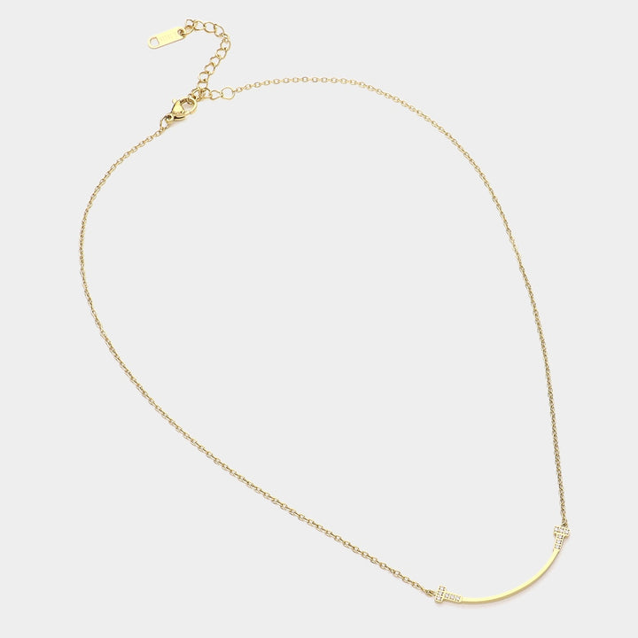 • Stainless Steel Stone Paved Smile Pendant Necklace