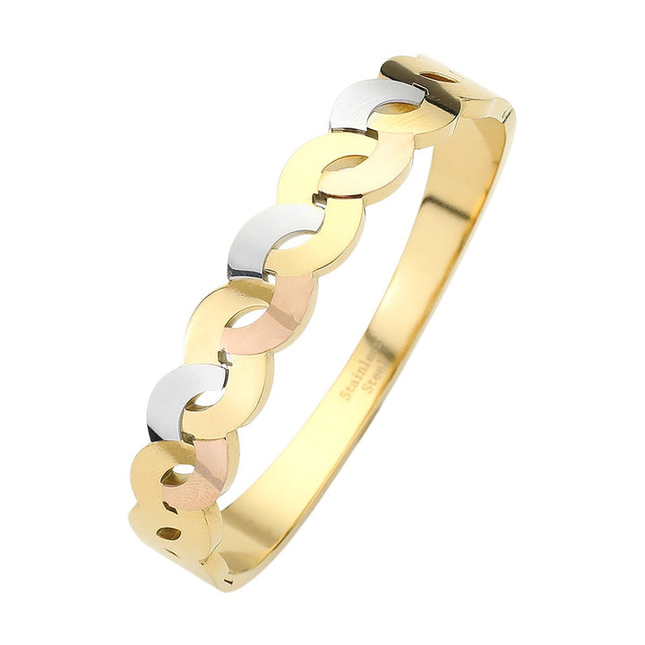 • Stainless Steel Three Tone Hinged Bangle Bracelet