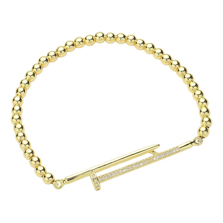 • Stone Paved Nail Stainless Steel Ball Beaded Stretch Bracelet